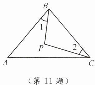 11. 如图,P是△ABC内一点,∠ABC= 80°,∠1= ∠2,则∠BPC=