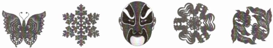 3. 剪纸是中国古老的民间艺术,先后入选中国国家级非物质文化遗产名录和人类非物质文化遗产代表作名录. 小文购买了以“剪纸图案”为主题的5张书签(如图),他想送给好朋友小乐一张. 小文将书签背面朝上(背面完全相同),让小乐从中随机抽取一张,则小乐抽到的书签上的图案既是轴对称图形又是中心对称图形的概率是(