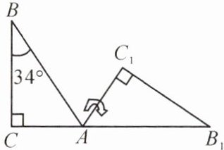 6. 如图,将Rt△ABC(其中∠B= 34°,∠C= 90°)绕点A按顺时针方向旋转到$△AB_1C_1$的位置,使得点$C,A,B_1$在同一条直线上,那么旋转角最小等于(