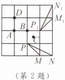 2. 如图,在4×4的正方形网格图中,将△MNP绕某点旋转一定的角度,得到$△M_1N_1P_1,$则其旋转中心一定是点