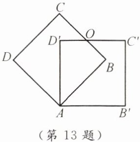 13. 把边长为3的正方形ABCD绕点A顺时针旋转45°得到正方形AB'C'D',边BC与D'C'交于点O,则四边形ABOD'的周长是(