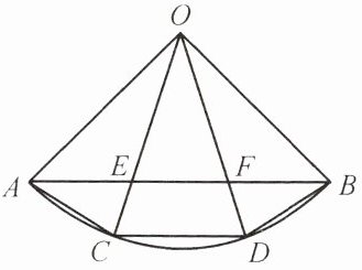 12. 如图,扇形 AOB 的圆心角为 90°,C,D 是弧 AB 的三等分点,半径 OC,OD 分别与弦 AB 交于点 E,F,下列说法错误的是(