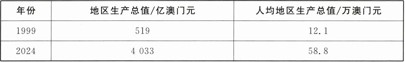 13. 下面是澳门特别行政区1999年与2024年的经济发展情况对比表。这说明( )