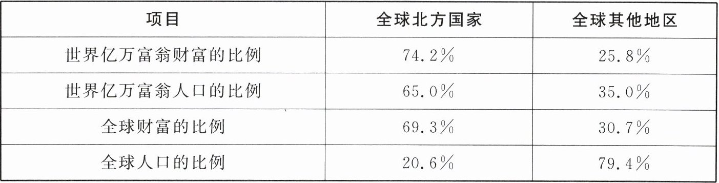 19. 下表反映的是全球北方国家与全球其他地区所掌握的财富比例情况。分析数据后你可以得出的结论是 ( )