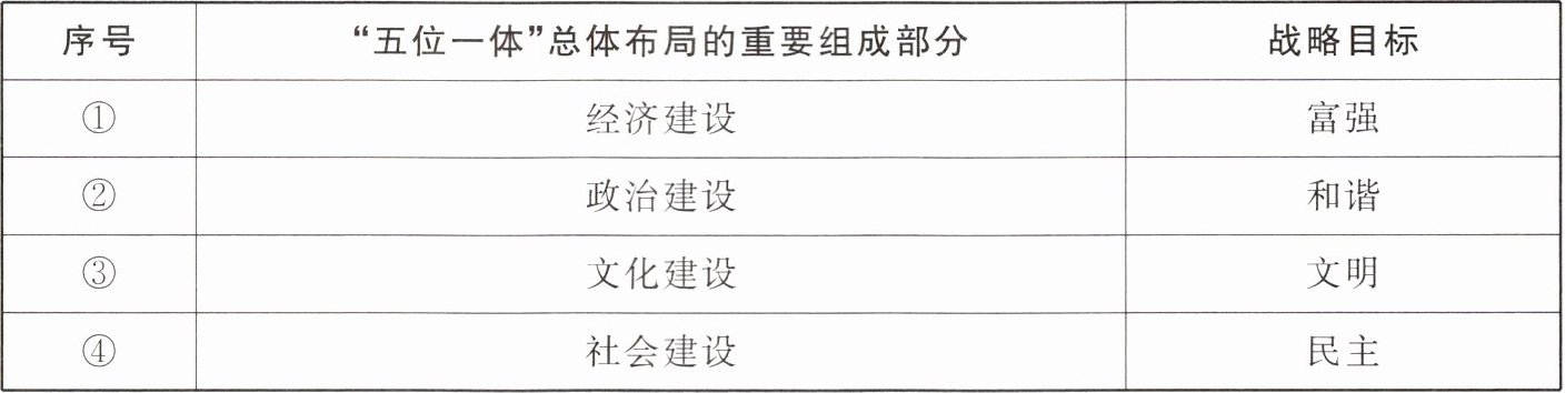 |序号|“五位一体”总体布局的重要组成部分|战略目标|