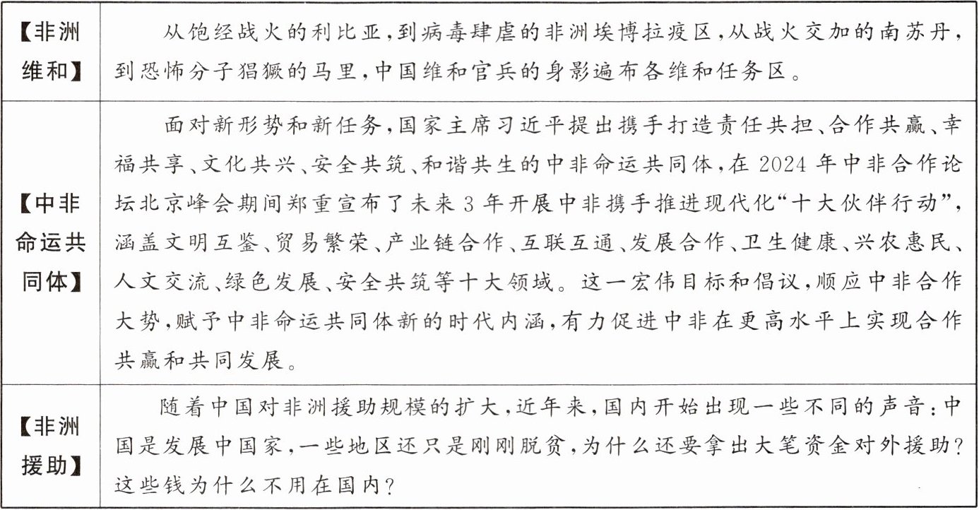 (3)根据【非洲援助】的内容并结合所学知识,说说我国应如何处理好国内发展和对外援助的关系。(4 分)