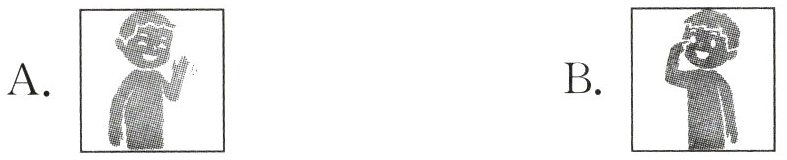( )5. Mike 和 Bob 在玩“我说你做”的游戏。Mike 说:“Wave your hand.” Bob 做了以下哪个动作?