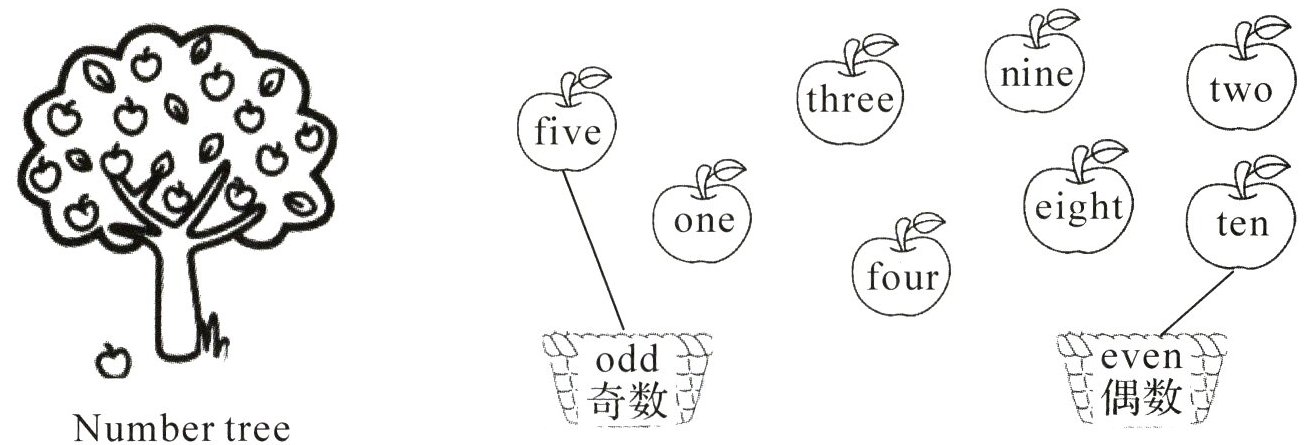 二、Read and match. 学完字母,我们跟着 Sarah 来学一学数字的分类吧。将合适的数字苹果与框连起来。