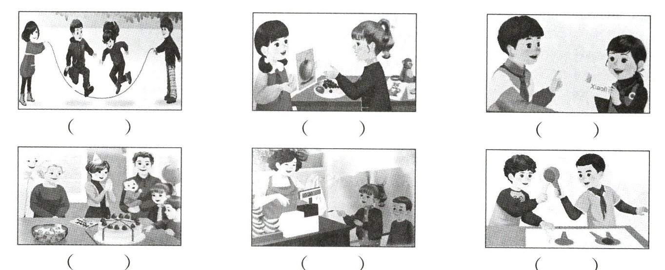 五、Read and choose. 看看 Sarah 的朋友们都在假期做什么吧!选择合适的图片,将答案写在括号中。