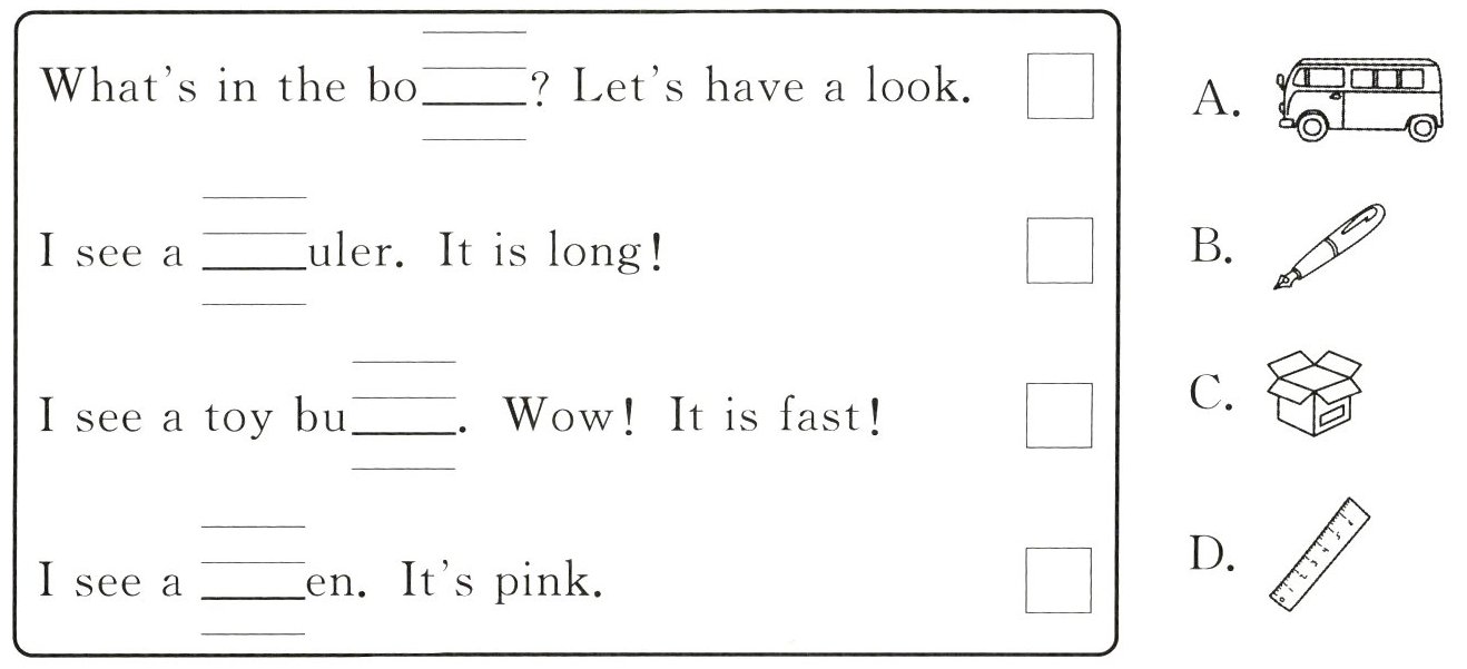 六、Listen choose and write. 听音,选择,并把单词补充完整。
