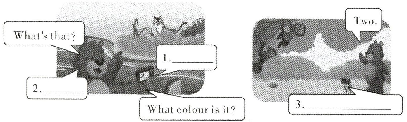 五、Read and choose. Zip 和 Zoom 正在动物园里。读图,从方框中选择合适的句子补全对话。