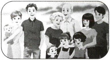 四、Read and choose. 下面是 Sarah 的家庭照片,真是一个 big family。请选择正确的单词序号填入方框。