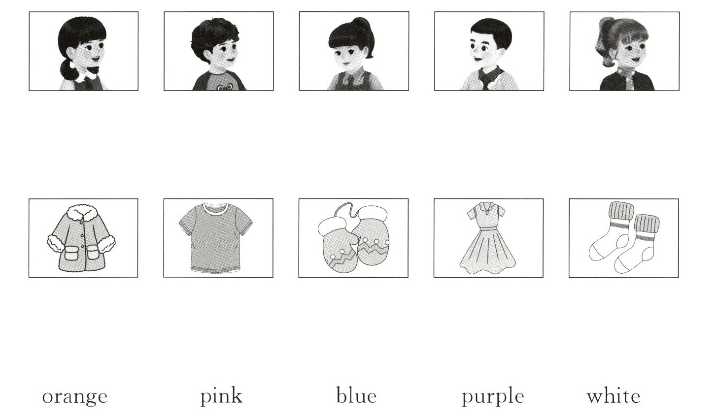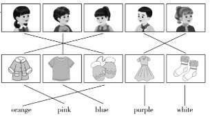 二、听音,连线,为小伙伴找到他们的衣服并匹配颜色。
