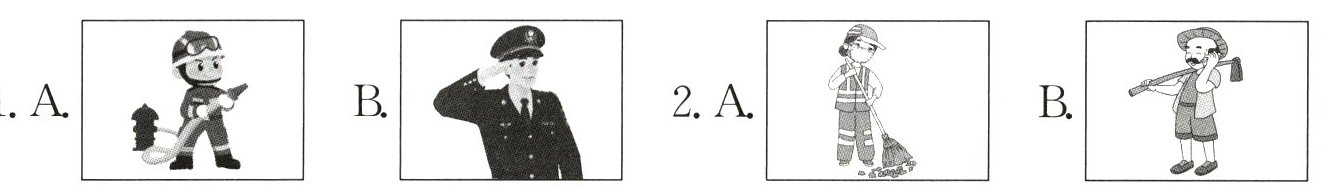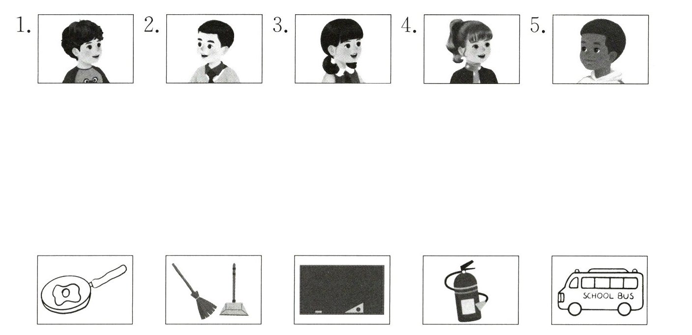 二、听音,找一找这是谁的邻居,与他们工作的用具连线。