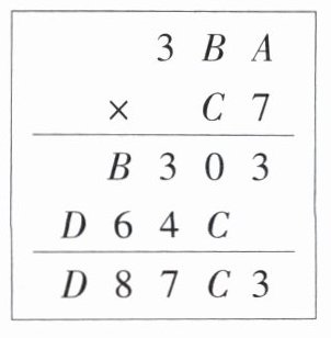 4. $A$,$B$,$C$,$D$分别代表不同的数字,并且满足右边的算式。那么$A$,$B$,$C$,$D$分别代表什么数字?