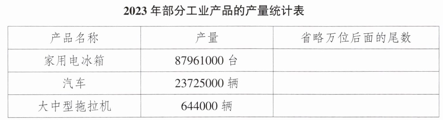 1. 家用电冰箱:$87961000 \approx 8796$万 台