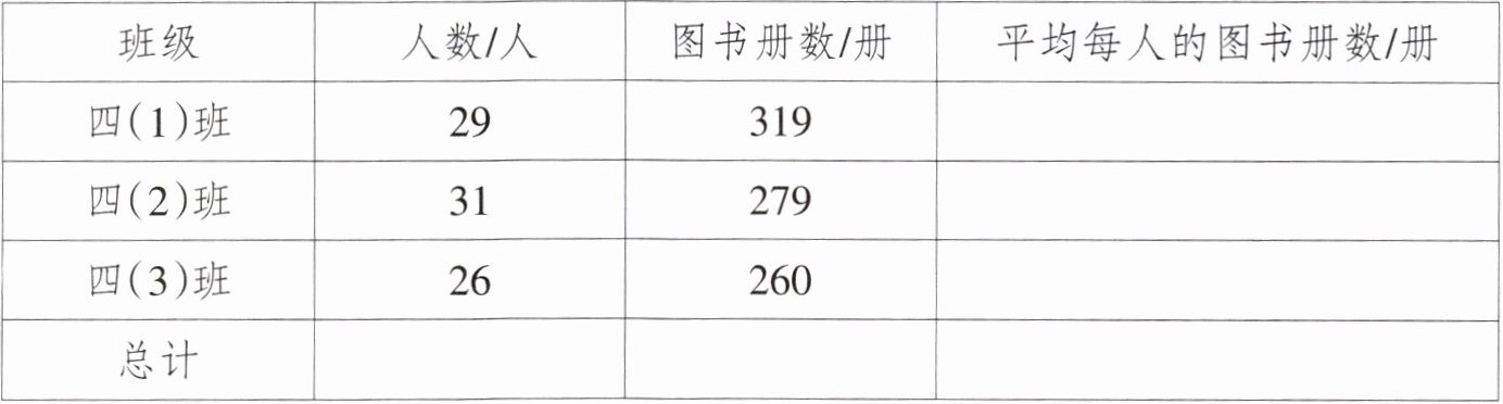 8. 下面是某小学四年级$3$个班的人数和图书册数的统计表。