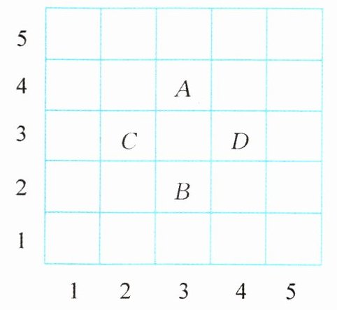3.B(3,2) C(2,3) D(4,3) 发现A和B第一个数字一样,说明列相同、行不同;C和D第二个数字一样,说明行相同、列不同。