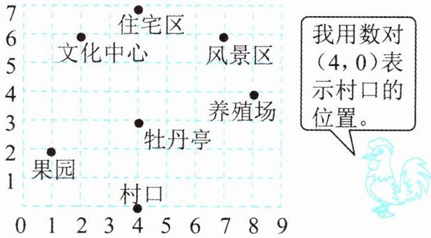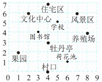 (2)周末,王明参观新农村的路线是(4,0)→(4,3)→(8,4)→(7,6)→(2,6)→(1,2)。他先后参观了哪些地方?