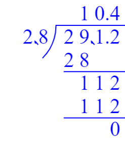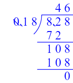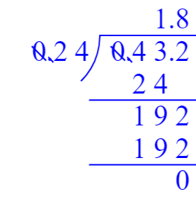$0.432÷0.24 = $ $8.28÷0.18 = $ $29.12÷2.8 = $ $17.5÷0.7 = $