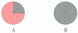 使A转盘指针可能指在红色区域,也可能指在黑色区域;使B转盘指针不可能指在红色区域。