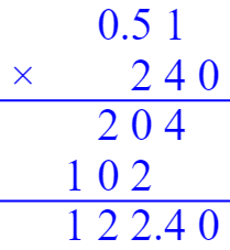 $1.67×0.04= $ $0.45×1.6= $ $3.6×1.53= $ $0.51×240= $