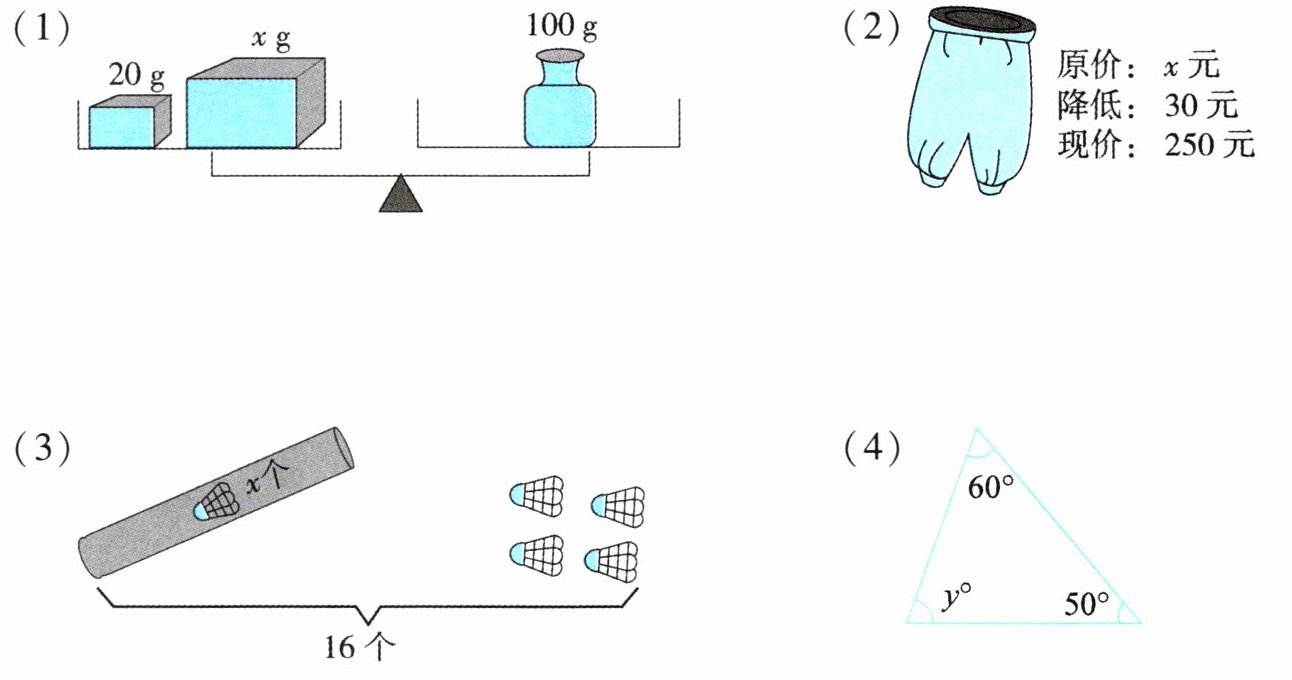 )。(3) 方程 $ x + 45 = 55 $ 的解是(