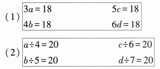 (1) 方程 $5x = 35$,方程左右两边同时(