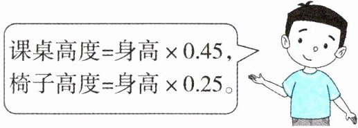 4. 小亮爸爸从亲友口中得知,高度不适合的桌椅不仅影响坐姿,还可能导致近视、脊柱弯曲。为此,爸爸专门买了一套可调桌椅。小亮现在1.49m,他的桌椅高度各调为多少米合适?(得数保留两位小数)