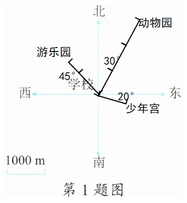 (3) 少年宫在学校东偏南 $20^{\circ}$ 方向 $1000m$ 处。