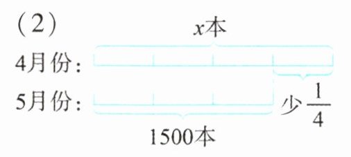 (2)4月份的本数 × $1-\frac{1}{4}$ $x× \left(1-\frac{1}{4}\right)=1500$