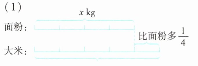 (1)面粉的重量 × $1+\frac{1}{4}$ $x× \left(1+\frac{1}{4}\right)=200$