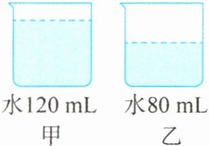 2. 将 $120\ mL$ 蜂蜜全部放入如图所示甲、乙两个盛有水的杯子中。要使两杯水的甜度相同,这两个杯子中应分别放入多少毫升蜂蜜?