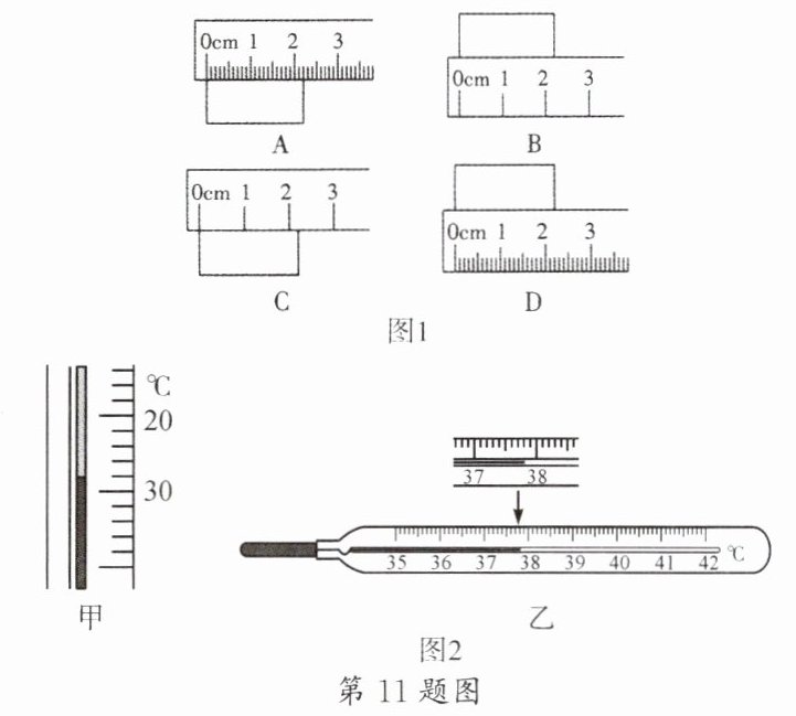 11. 科学研究过程中经常要进行测量,测量时正确读数很关键,请根据图示填空。