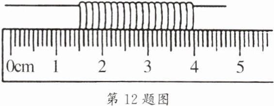 12. 为了较准确地测出金属导线的直径,小科采用了以下的办法:剪下一段导线后,将这段导线紧密地在一支铅笔上缠绕18圈,形成一个导线圈,再用一把刻度尺去测量这线圈的长度,如图所示为