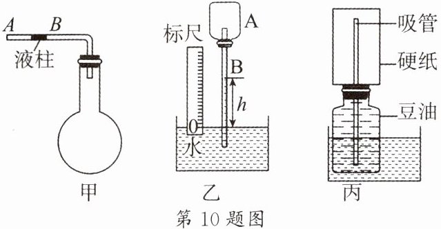10. 学完“温度的测量”后,班级开展了自制温度计的活动,同学们在家利用生活中常见器材做了甲、乙、丙三种温度计。请回答。