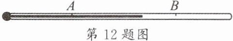 中一段时间,待液面稳定后,在液柱的上端对应处标注为$0^{\circ}C$,并标记为A点,然后把玻璃泡浸没在沸水中一段时间,待液面稳定后在液面上端对应处标注$100^{\circ}C$,并标记为B点。(2)接着小华用刻度尺测得两标记点之间的距离为$20cm$,则他用这支温度计来测量某杯水的温度时,发现液柱所处的位置距离A点$12cm$,试计算该杯水的温度。