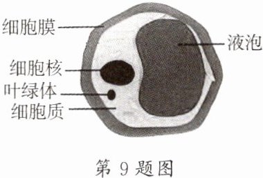 9. 小乐利用彩色橡皮泥等材料制作了如图所示的植物细胞模型。