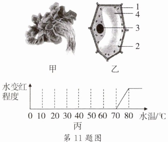 结构(填图乙中的数字)。(2)图丙表示水变红程度与热水温度的关系,可知若要不破坏该结构,水温最高不能超过