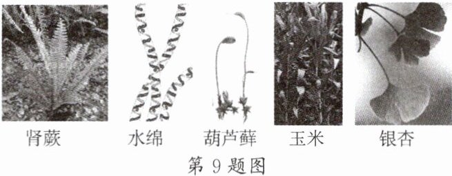 9. 下图列出了几种常见的植物,请回答有关问题。