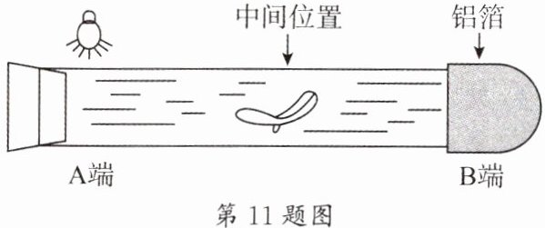 11. 涡虫是一种较为低等的动物,主要生活在淡水溪流中的石块下,以小甲壳类及昆虫的幼虫等为食。某科学兴趣小组利用涡虫做了如图所示的实验(注:铝箔不透光),请据此分析回答下列问题。