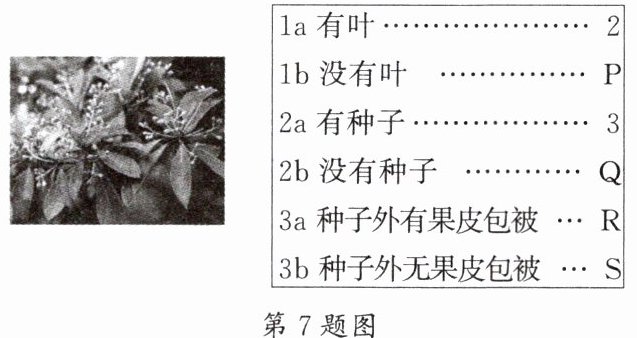 7. 如图所示的浙江楠是分布在杭州云栖、九溪的珍贵稀有物种,是优良的园林绿化树种。若P、Q、R、S这四株植物中有一株植物是浙江楠,则它是(