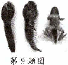 9. 不合理蛙主要生活在南美洲的亚马孙河流域。其在幼体阶段时,体长特别大。甚至可超过25cm (如图所示),而成年后的蛙却逐渐变得越来越小。这也是不合理蛙名称的由来。下列关于不合理蛙的叙述中正确的是(