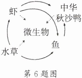 C. 水草→虾→鱼→微生物