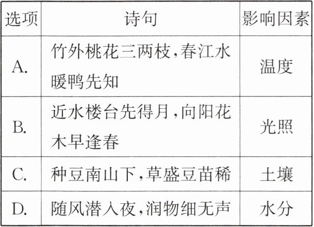 5. 下列诗句中描述的现象与所对应的影响因素,不匹配的是 (