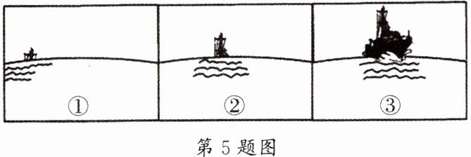 5. 在海边观察远处驶来的轮船时,会出现图中①~③所示的现象,根据这种现象我们可以作出的合理推论是(