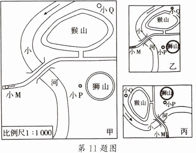 (3)图甲中,小M沿着小路往前走,他走到什么地方正好在小P的北方?______。