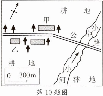 方向。若甲、乙两村之间的图上距离为3cm,则两村的实地距离为0.9