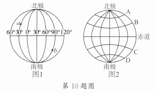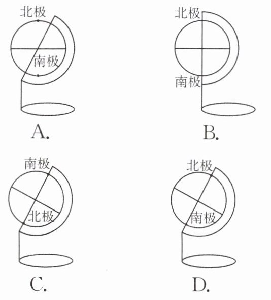(填“AB”“B 与赤道”或“C 与赤道”)之间。(3)下列地球仪中,组装正确的是______