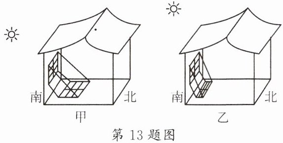 13. 如图表示朝南窗户外面太阳光照入屋内情况,甲、乙分别为一年中正午太阳光照入面积最大和最小的时候。其中图甲所对应的节气是 (